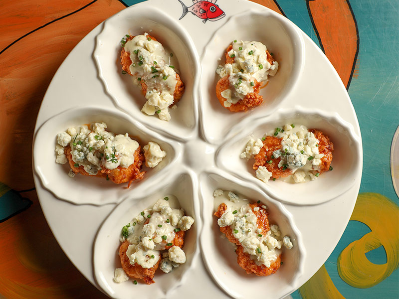 In the late 1990s, Red Fish Grill created the BBQ Oyster, now a New Orleans classic. These flash-fried oysters are tossed in our famous Crystal hot sauce honey BBQ and topped with house-made blue cheese dressing and crumbles.