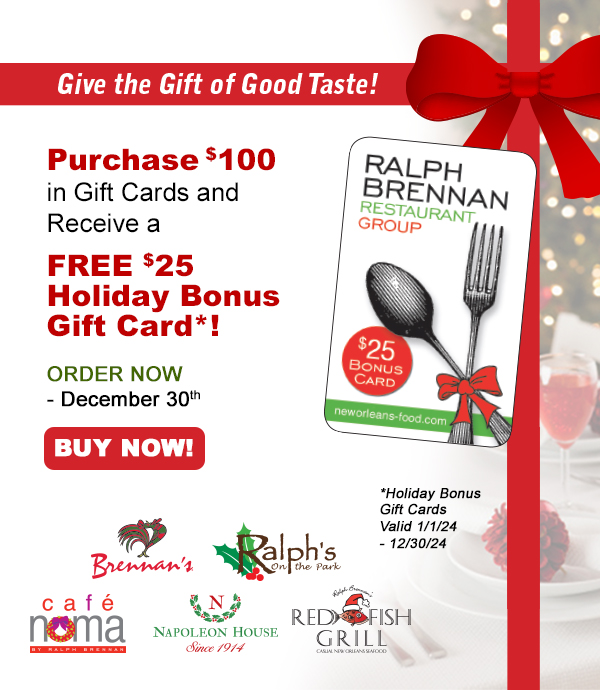 For twenty-five years, Red Fish Grill by Ralph Brennan has celebrated the fresh, seasonal bounty of local farmers and Gulf fishers. We stand apart for our wide variety of fresh Gulf fish, expertly grilled to perfection on our signature wood-burning grill. Red Fish Grill's lively decor, expansive bar, and welcoming vibe beckon Bourbon Street revelers and serious diners alike in search of gracious hospitality and a commitment to inspired, locally sourced seafood.
