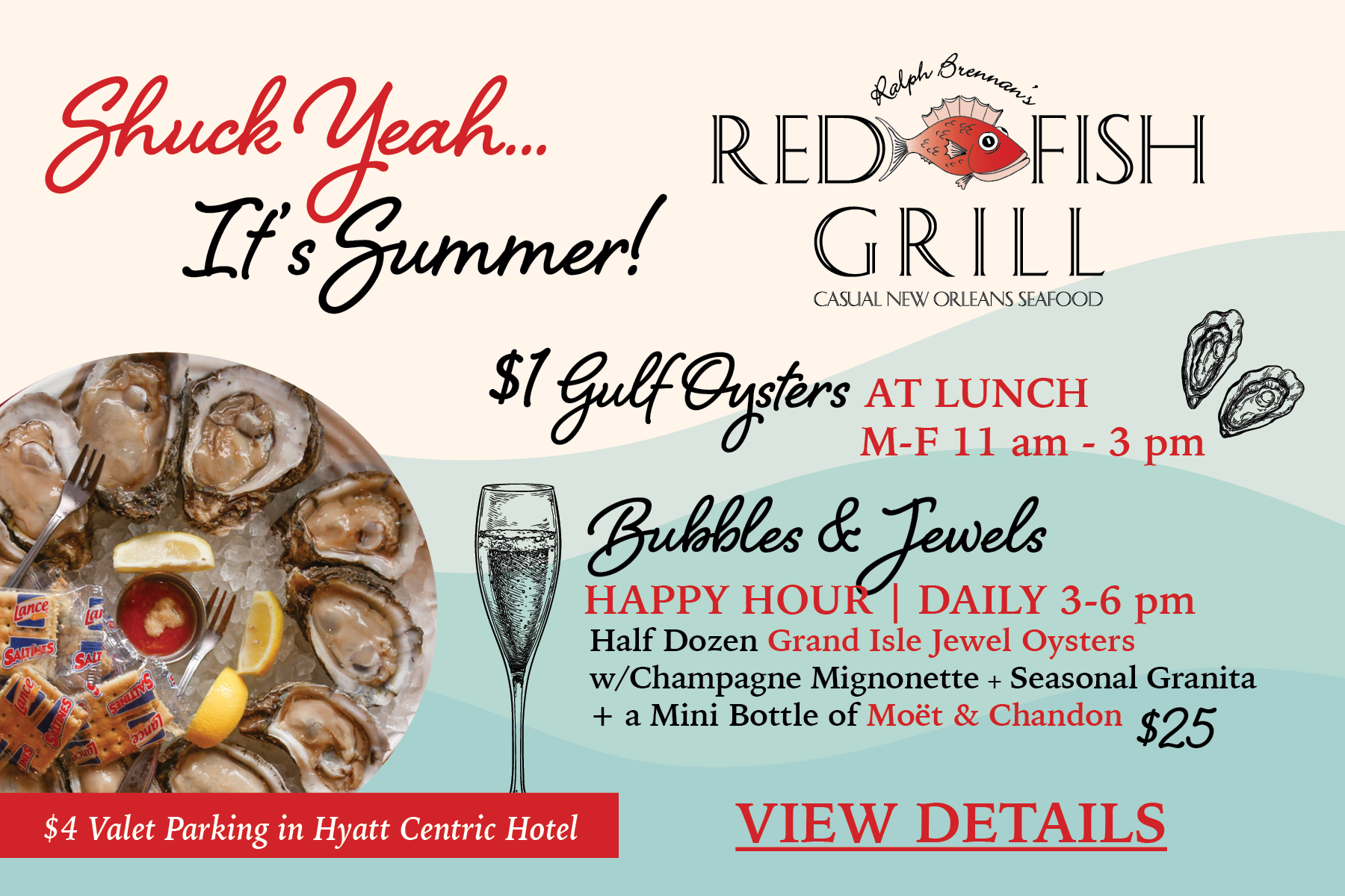 Daily, 3-6 PM in the Oyster Bar